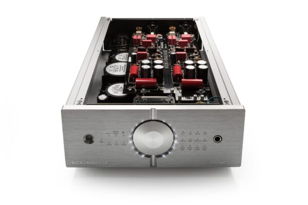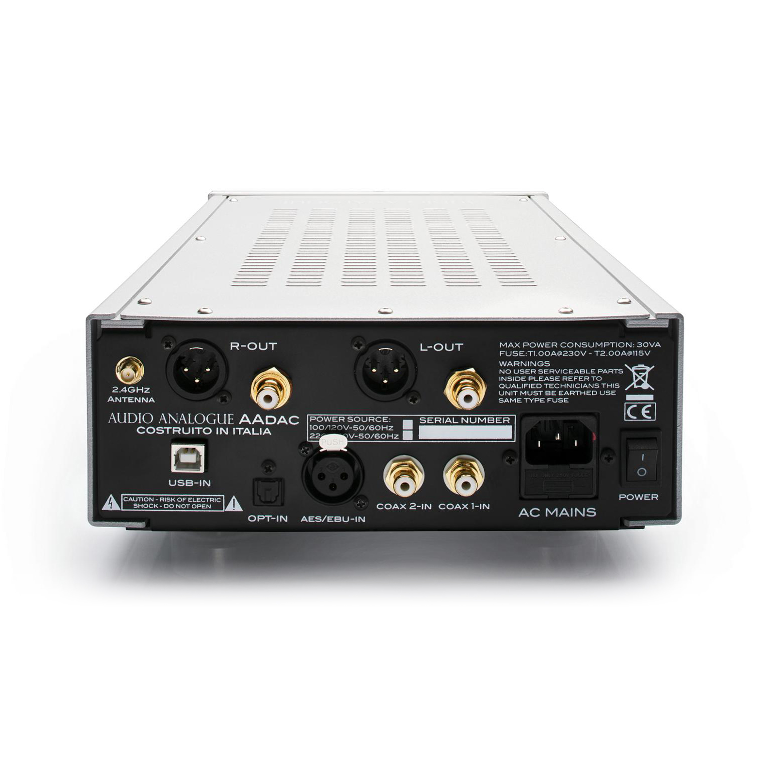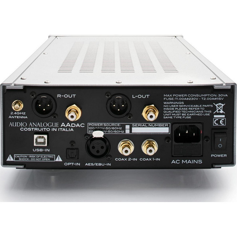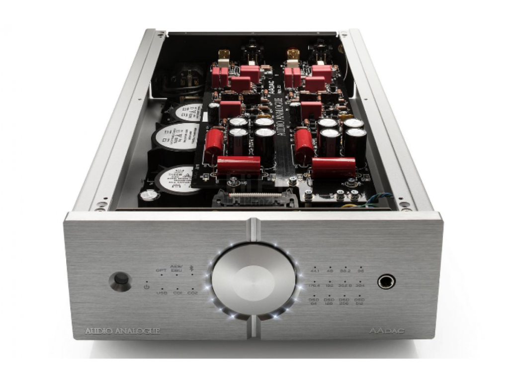 Le nouvel AAdac est le dernier produit de la gamme PureAA. Comme les AAcento et AAphono, il s’inscrit parfaitement dans la philosophie Audio Analogue: sa conception simple, ses performances sonores remarquables et son grand soin apporté à la finition et au choix des matériaux et des pièces en font un partenaire idéal pour votre sources numériques. AAdac a une grande variété de fonctions et en entrant dans la configuration, il est possible de régler l’intensité de la led, de changer la balance des canaux, de sélectionner l’un des 7 filtres numériques et de passer en mode préamplificateur.