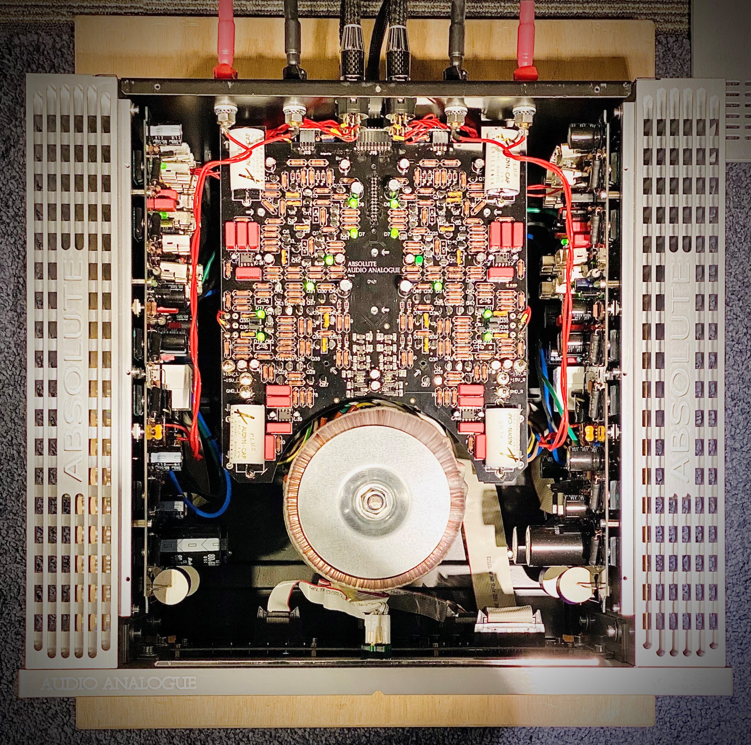 All stages of the amplifier are on independent and fully balanced boards, dual-mono configuration and discrete component circuits.
