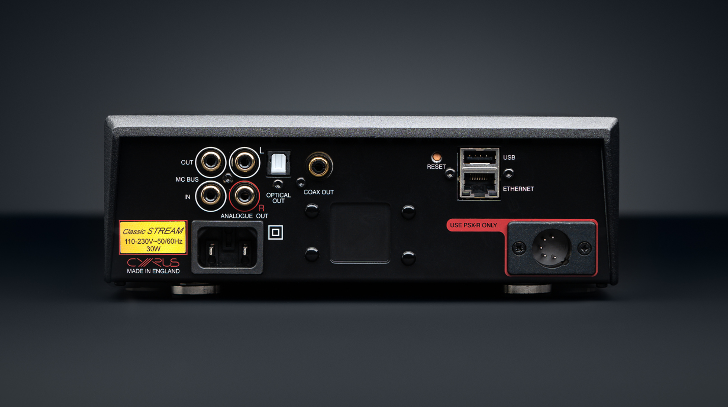 The Classic STREAM includes a port for the PSX-R2 power supply. Power from the PSX-R2 is routed internally to the analogue stages to provide a more stable, low-noise power supply for the post-DAC stages of the D/A converter.