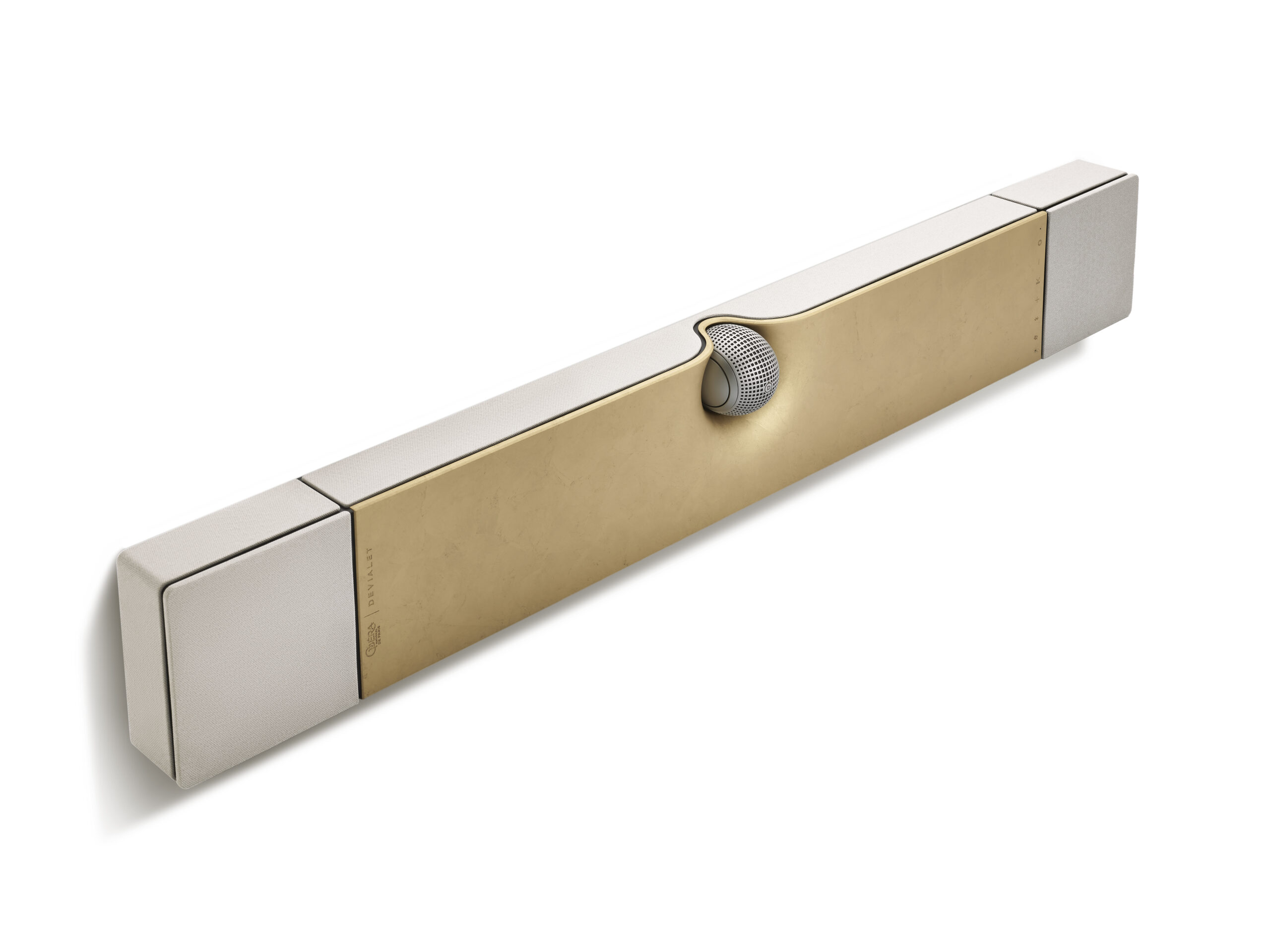 Notre barre de son Devialet Dione en Ă©dition OpĂ©ra de Paris dĂ©voile un design d’une exceptionelle finesse. Son plateau supĂ©rieur central couvert de feuilles d’or 22 carats se distingue par sa couleur inspirĂ©e des ors du Palais Garnier. Ressentez toute la puissance Ă©motionnelle de l’opĂ©ra, dans l’intimitĂ© de votre salon.