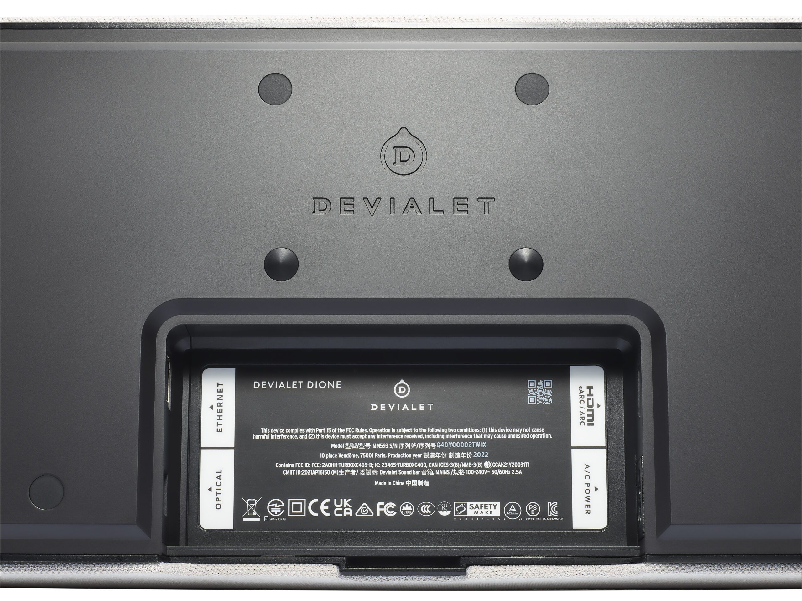 La barre de son Devialet Dione a Ă©tĂ© conçue comme un système home-cinĂ©ma tout-en-un afin de profiter facilement et au mieux du son multicanal Ă partir d’un seul produit. Notre objectif n’est pas de surpasser les installations traditionnelles avec plusieurs haut-parleurs, mais plutĂ´t de proposer une expĂ©rience tout-en-un avec la qualitĂ© sonore Devialet sans avoir Ă rĂ©aliser une installation complexe.