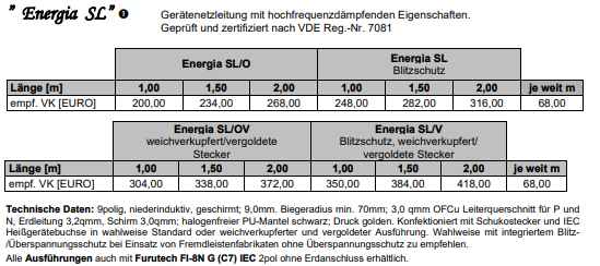 ” Energia SL” Gerätenetzleitung mit hochfrequenzdämpfenden Eigenschaften.