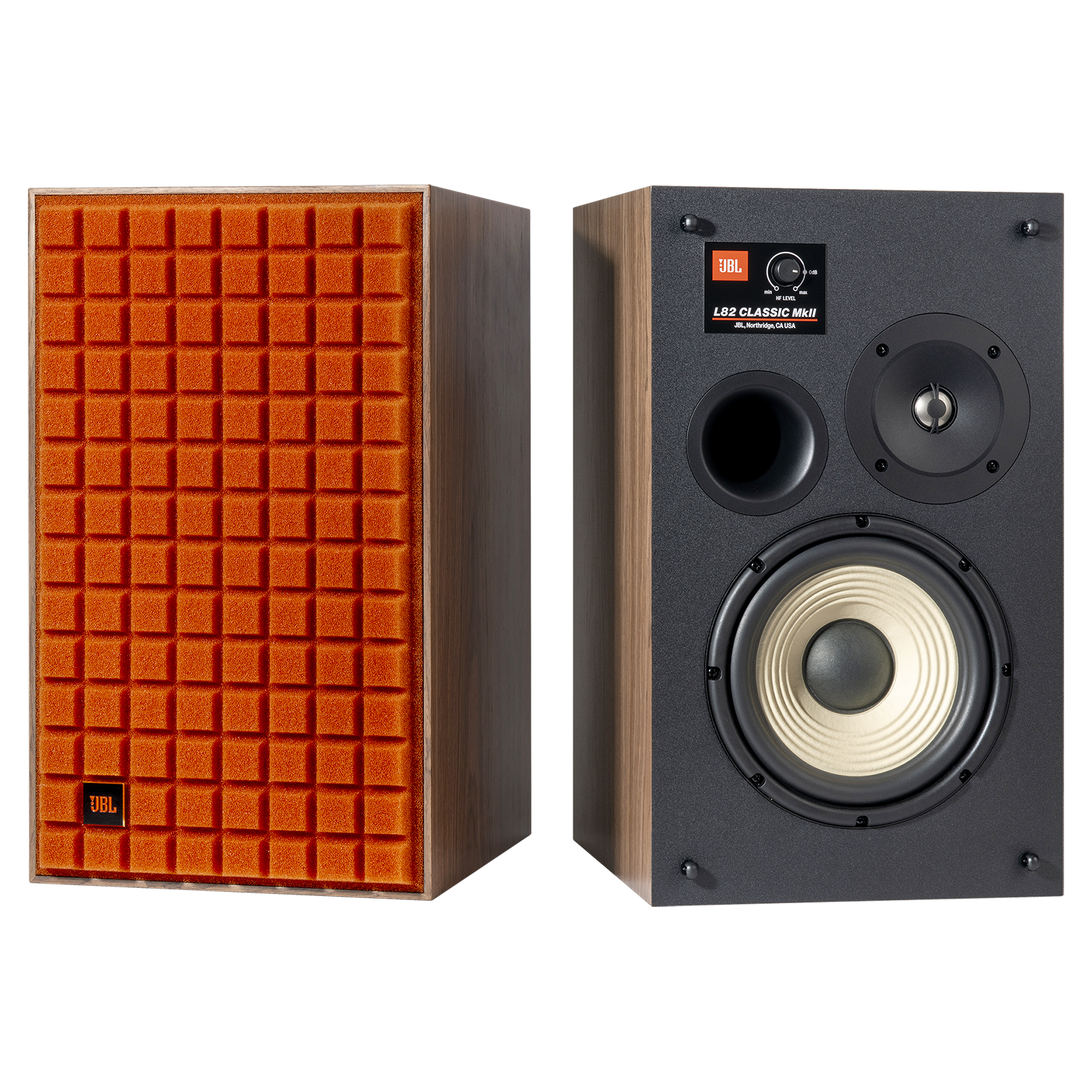 The L82 Classic MkII is the next evolution in the reborn legend that is the JBL Classic Series. This 8-inch (200mm) 2-way bookshelf loudspeaker features upgraded JBL acoustic components to improve the sound quality of this Classic loudspeaker. In addition to performance enhancements to the woofer and tweeter the L82 Classic MkII features a revised crossover network to include bi-wire/bi-amp capabilities via a premium terminal cup with dual sets of gold-plated binding posts. The L82 Classic MkII features a genuine walnut satin wood veneer cabinet and a striking Quadrex foam grille available in a choice of black, orange or blue. Beneath this compelling exterior lie modern acoustic components that deliver stunning sound and imaging sure to please any music lover.