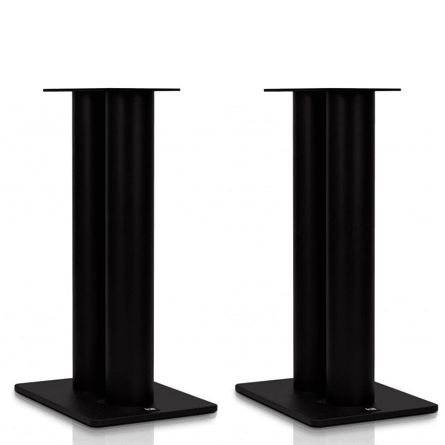 Les pieds Kii THREE sont faits sur mesure pour les enceintes. Ils sont faits d’acier de qualité supérieure et laqués en noir. Les tubes sont remplis de sable pour éliminer les résonances et vibrations éventuelles.  D’une hauteur de 70 centimètres, ils correspondent à la hauteur d’écoute individuelle idéale et reposent sur des pointes M8. Pour garantir la stabilité des enceintes, la plaque supérieure correspond parfaitement à la plaque inférieure rétractée des Kii THREE.
