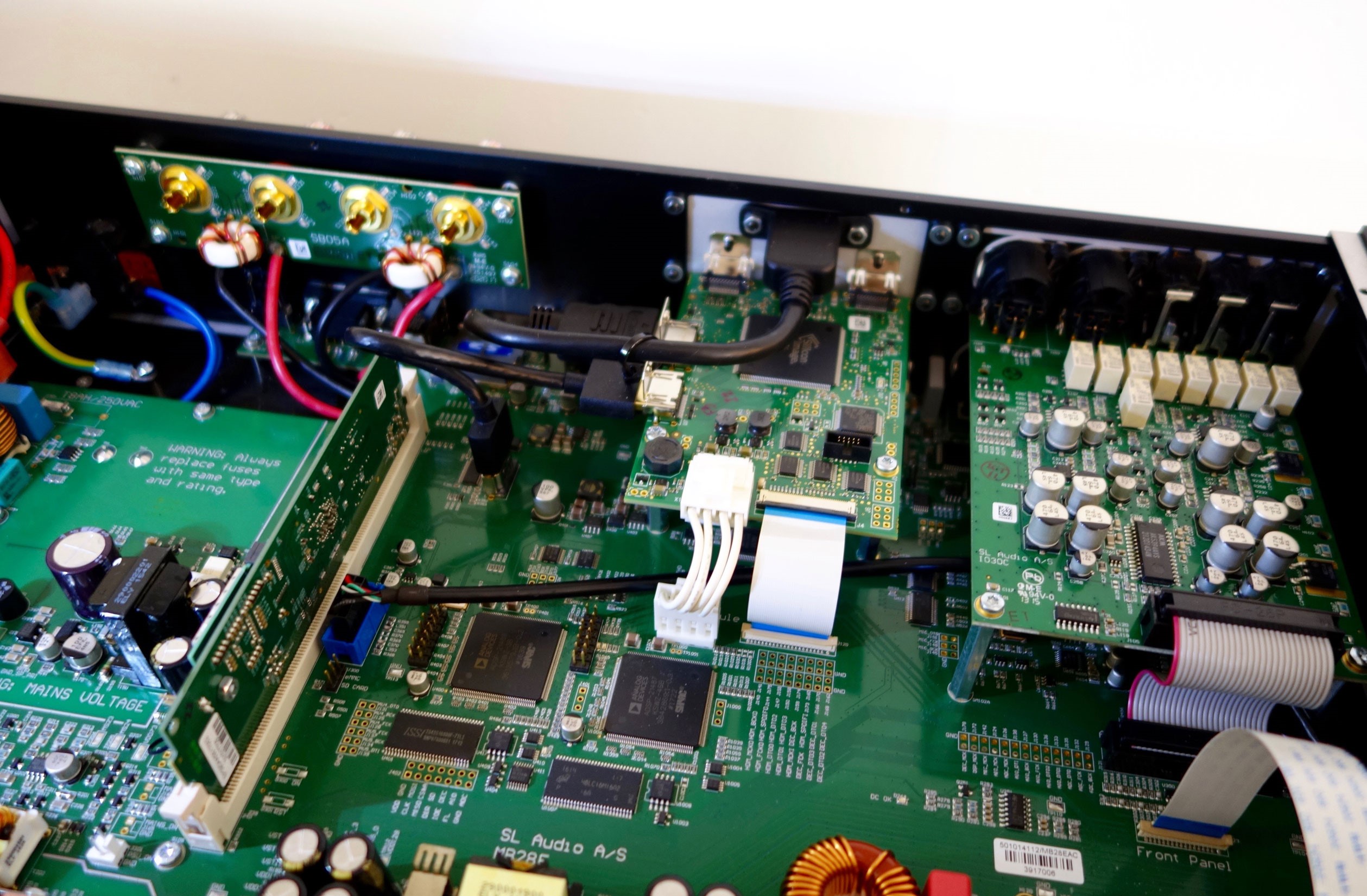 A variety of inputs and outputs provide plenty of options to connect your audio and video sources as well as your speaker setup – such as 7 digital inputs including a balanced AES/EBU, USB inputs connects to music stored external, 2 analog inputs for simple analog music sources and optional modules.