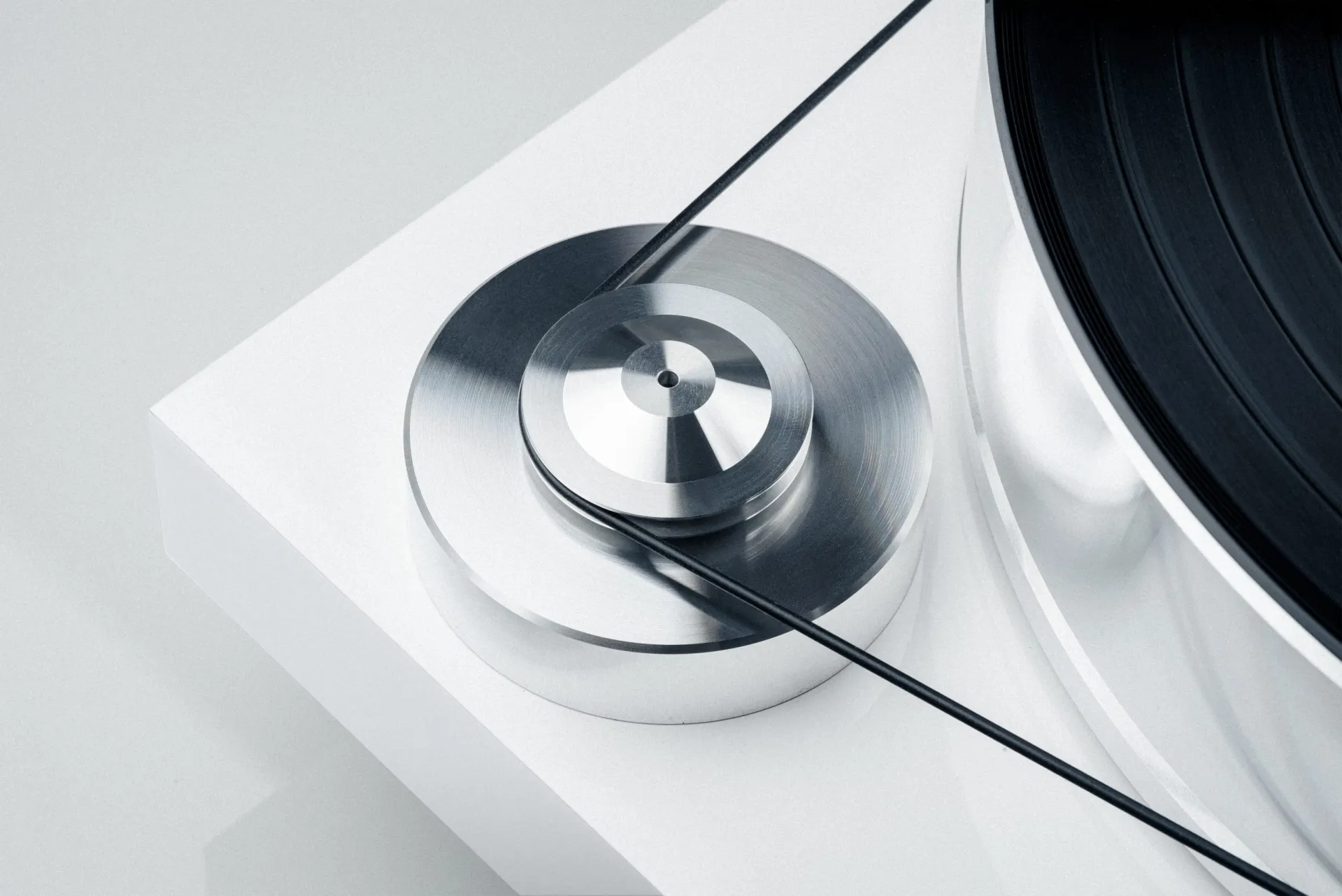 The 10 kg aluminium platter is TPE damped and sits on an inverted bearing which is magnetically decoupled. The vinyl layer on top is the perfect surface for your record.