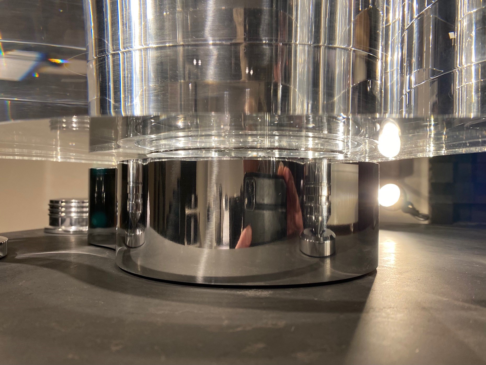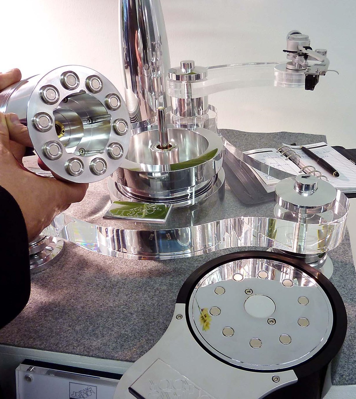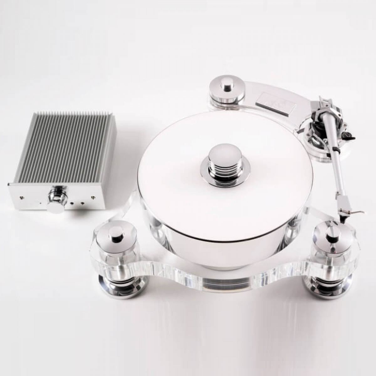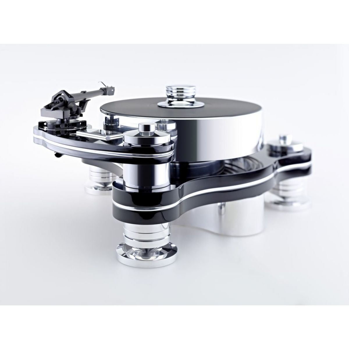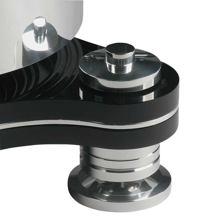 Elle est aussi le premier modèle qui offre de l’entrainement FMD (Free Magnetic Drive), en d’autres termes : il n’y a AUCUN contact entre le module moteur et le plateau. De cette manière on supprime non seulement toutes les vibrations qu’un moteur pourrait transmettre, mais aussi on améliore considérablement le pleurage et scintillement.
